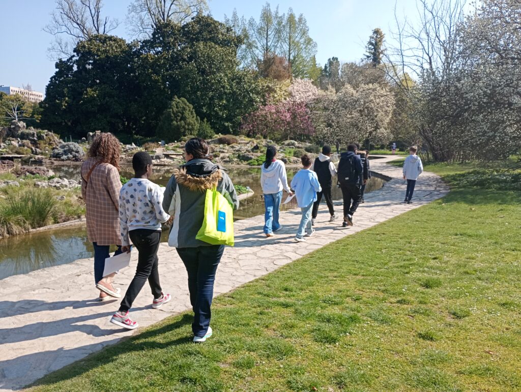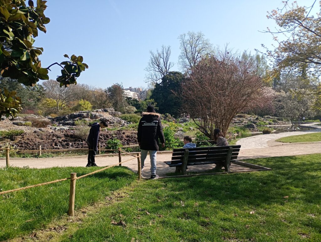 Vendredi 20 mars, nous avons décidé de revenir au Parc, profiter du beau temps pour rédiger cet article avec Mme Floret et Mme Bereni, afin de vous raconter notre sortie. Mme Giaume en a profité pour nous faire faire du calcul mental sur les heures de départ et temps de trajet pour nous rendre au Parc ! Ensuite, sur place, notre professeur de mathématiques nous a montré comment mesurer la hauteur de marches à l’aide d’une ficelle d’un mètre.