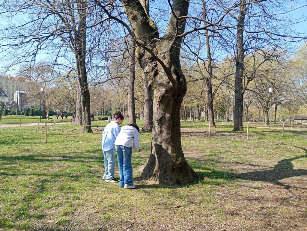 Nous avons beaucoup apprécié de changer de décor pour travailler autrement, au soleil (même s’il a presque fait trop chaud mardi!) et surtout admirer la diversité des animaux du Parc de la Tête d’Or : nous avons croisé fourmis, gendarmes, canards, oies, chiens, écureuils, biches, daims, poissons, têtards… Bref, une véritable arche de Noé !