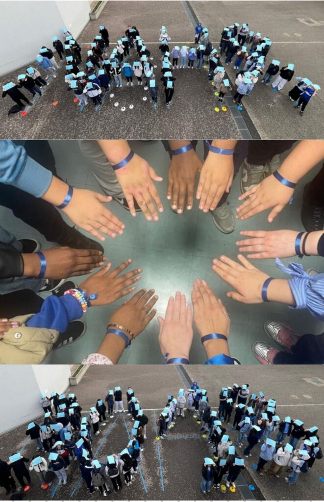 Les éco délégués se sont mobilisés pour préparer des bracelets de couleur bleue, distribués à chaque élève.